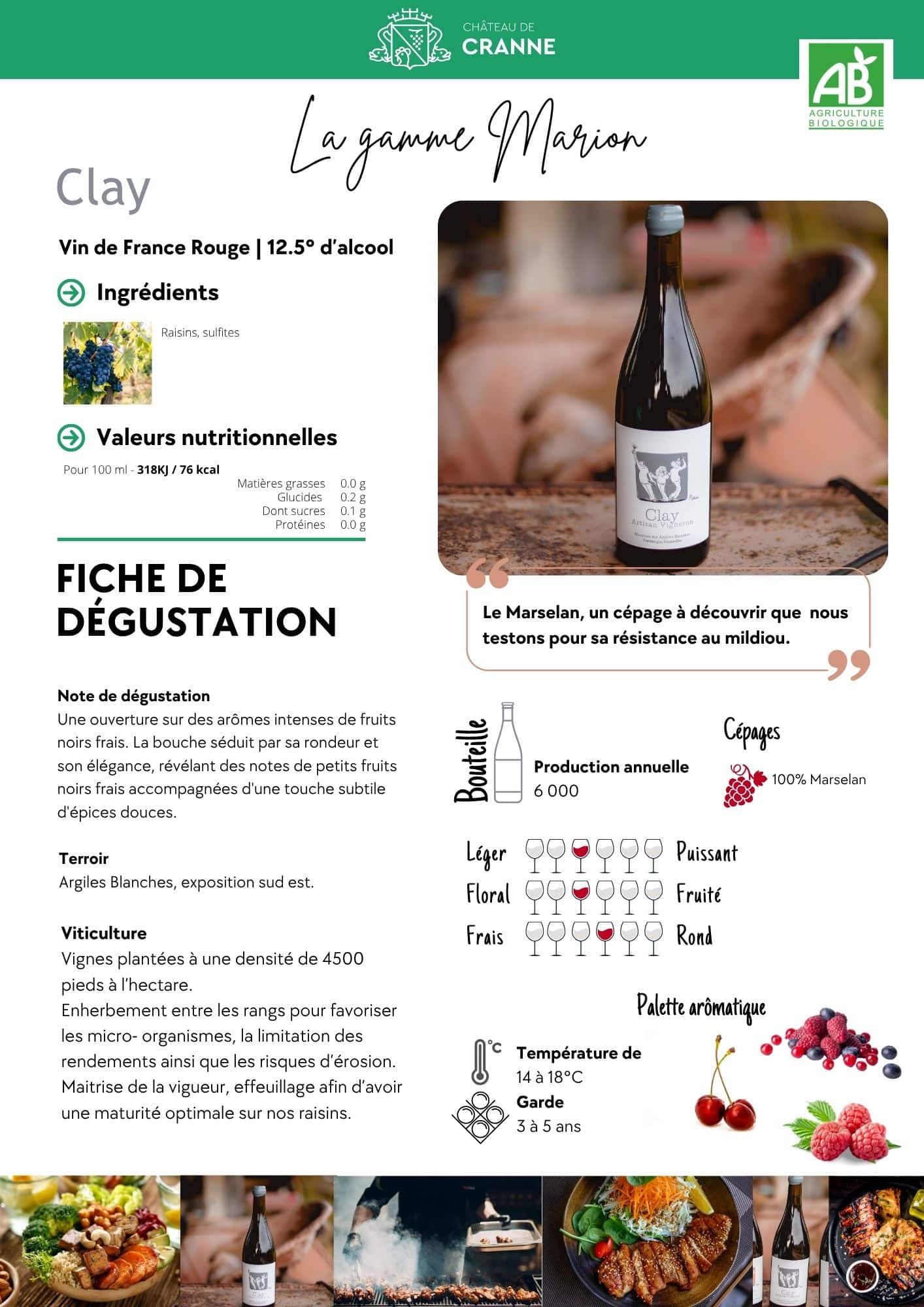 Ouverture sur des arômes intenses de fruits noirs frais. Bouche séduisante par sa rondeur et son élégance, révélant des notes de petits fruits noirs frais et une touche subtile d’épices douces.